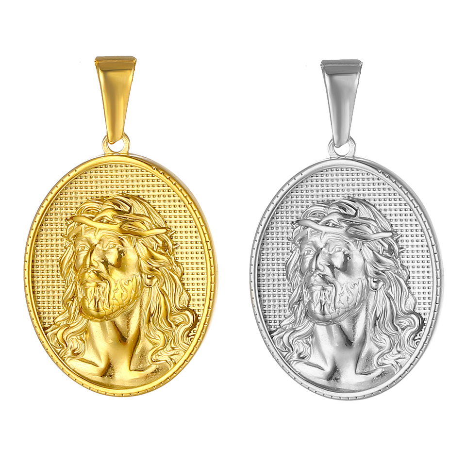Pendentif visage de Jésus bicolore multicolore en acier inoxydable anti-ternissement, bijoux personnalisés, collier vintage, breloques