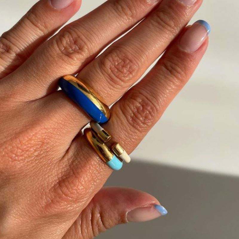 Product Name:Non Tarnish & Waterproof 2 Colors Mixed Navy Blue Enamel Rings