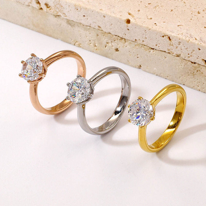 Bagues imperméables non ternissables de bonne qualité, plaquées or 14k 18k PVD, en acier inoxydable 316L, avec zircon, pour femmes