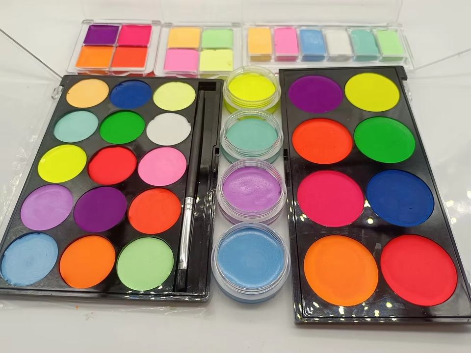 Non toxique 4 couleurs eau activée sans danger pour la peau visage corps peinture halloween maquillage palette de fard à paupières