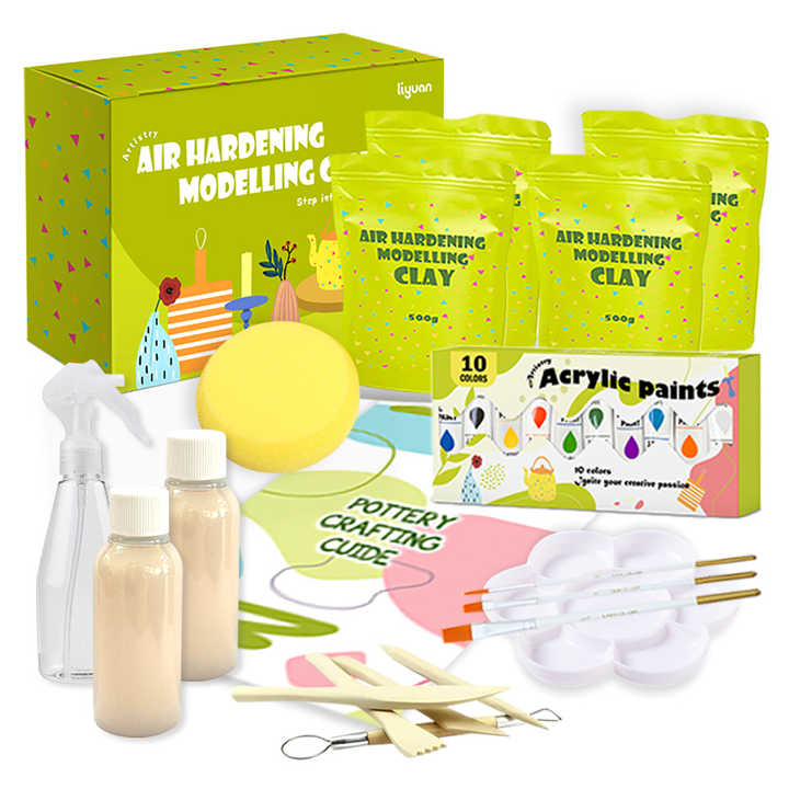Ensemble d'argile à modeler durci à l'air non toxique Kit de poterie de bricolage éducatif non cuit emballage sous vide