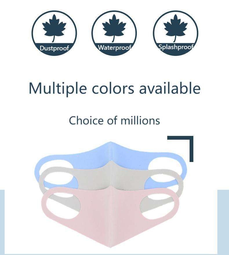 Masque facial non poreux 3D Ice Silk Buttery Soft Anti-Dust Lavable Unisexe Respirant pour les courses quotidiennes
