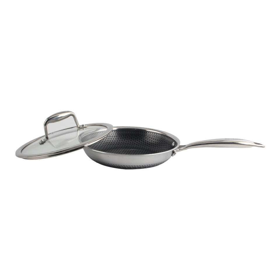 Poêle antiadhésive de 10 pouces avec couvercle en verre trempé et poignée anti-chaleur