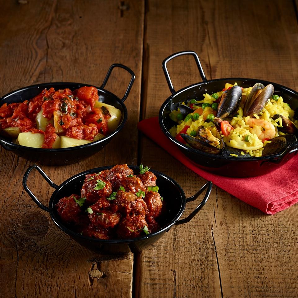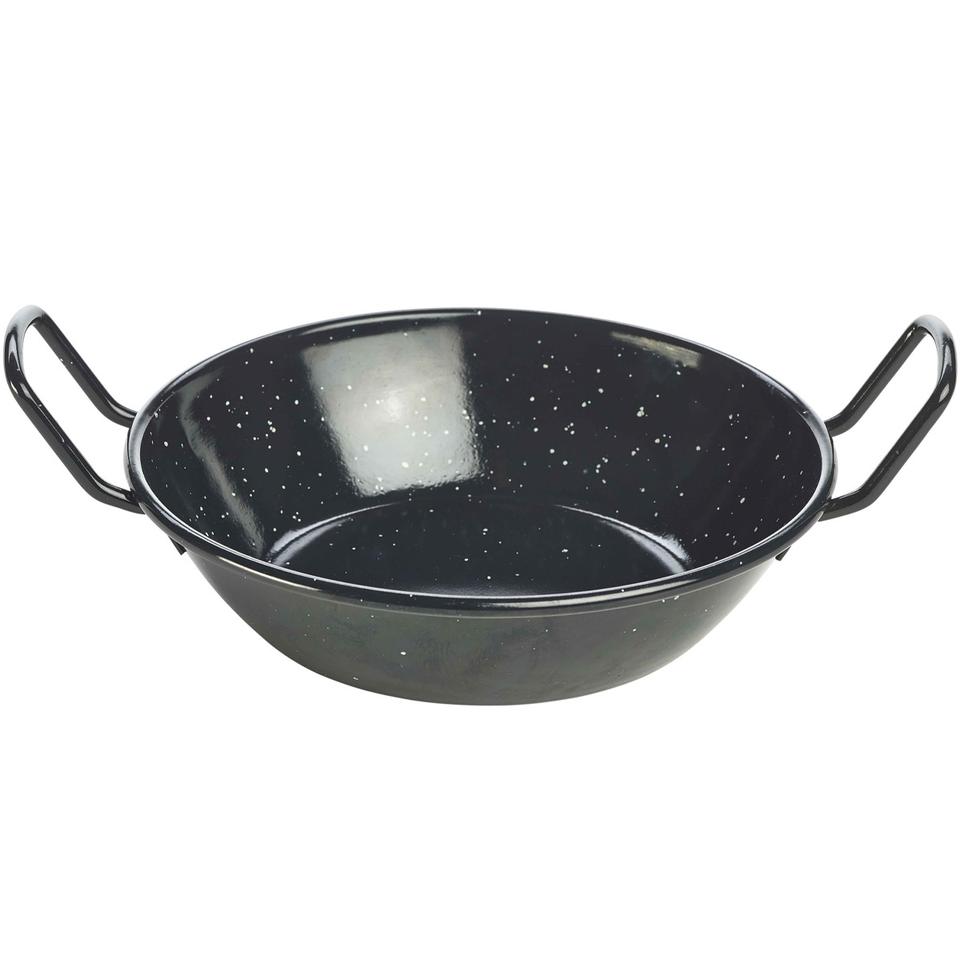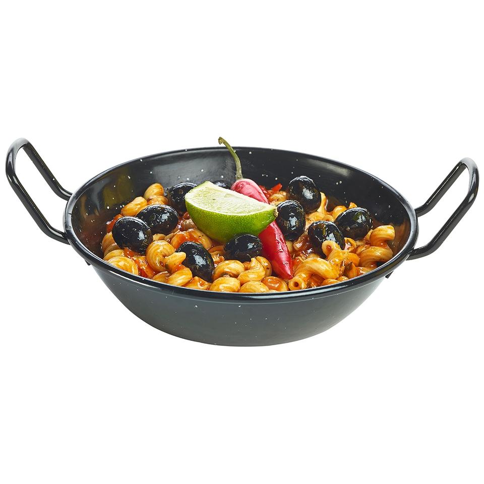 Poêle à frire antiadhésive Couleur noire avec deux poignées Poêle à paella profonde en acier au carbone Poêle à paella antiadhésive ronde émaillée sur acier P