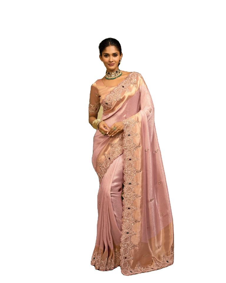 material:embroidered saree with blouse