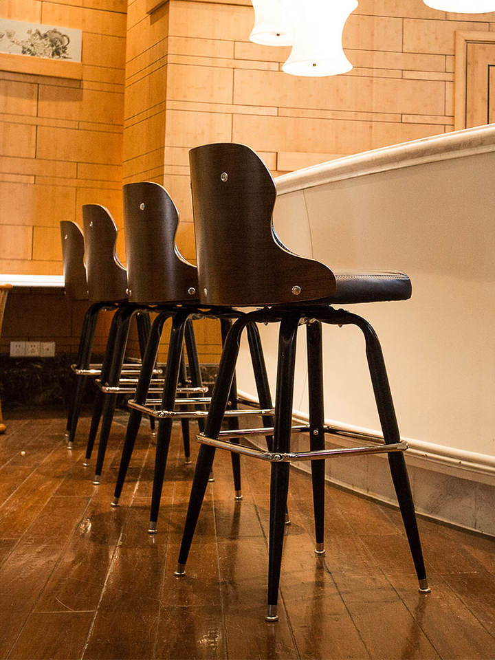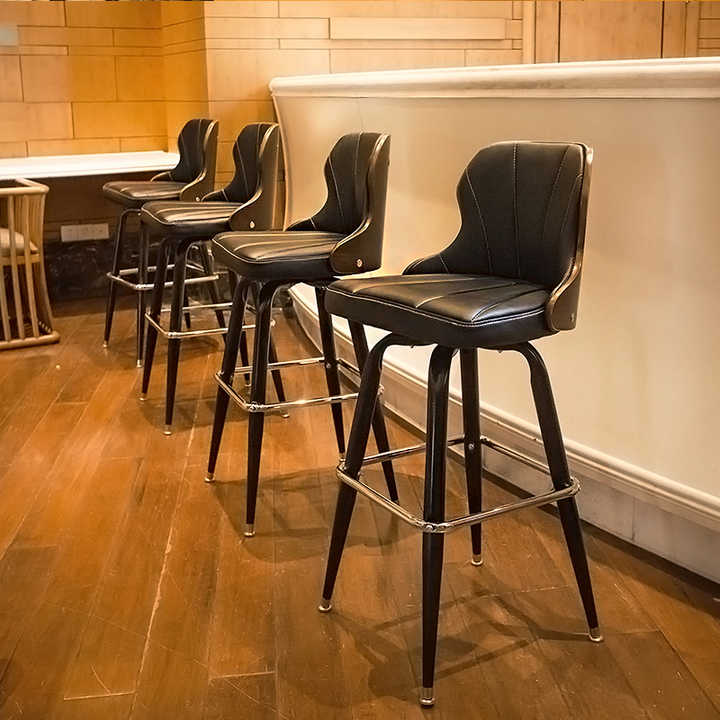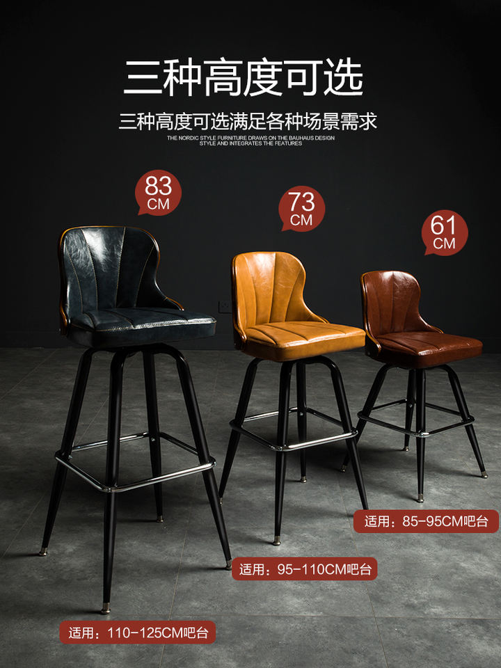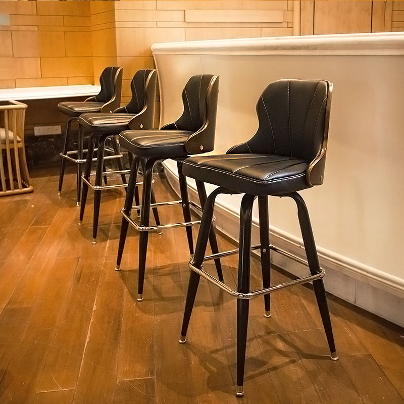 Tabouret de bar nordique en bois massif avec dossier, chaise haute vintage en fer, pivotante, pour café et comptoir