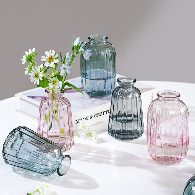 Mini vase en verre transparent de couleur nordique, petit récipient à fleurs créatif et simple pour arrangement floral de table