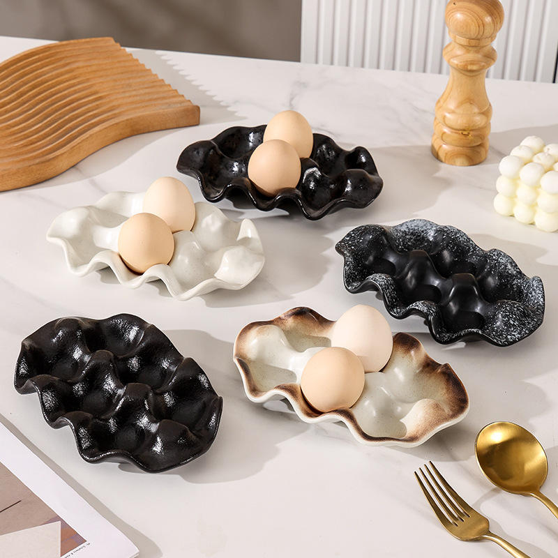 Plateau à oeufs en céramique transformé au four créatif nordique stockage d'oeufs de cuisine domestique de grande valeur pour Amazon best-seller pour outils à oeufs