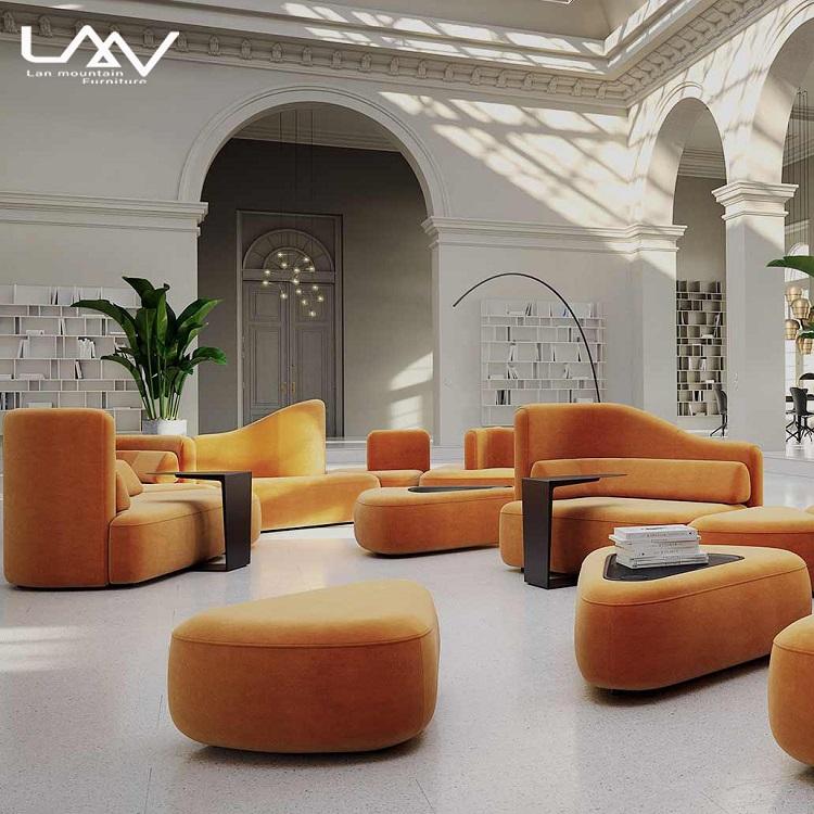 Canapé de salon d'hôtel de conception nordique, ensemble de meubles de villa d'exposition, cadre en bois de velours, liberté, canapé modulaire