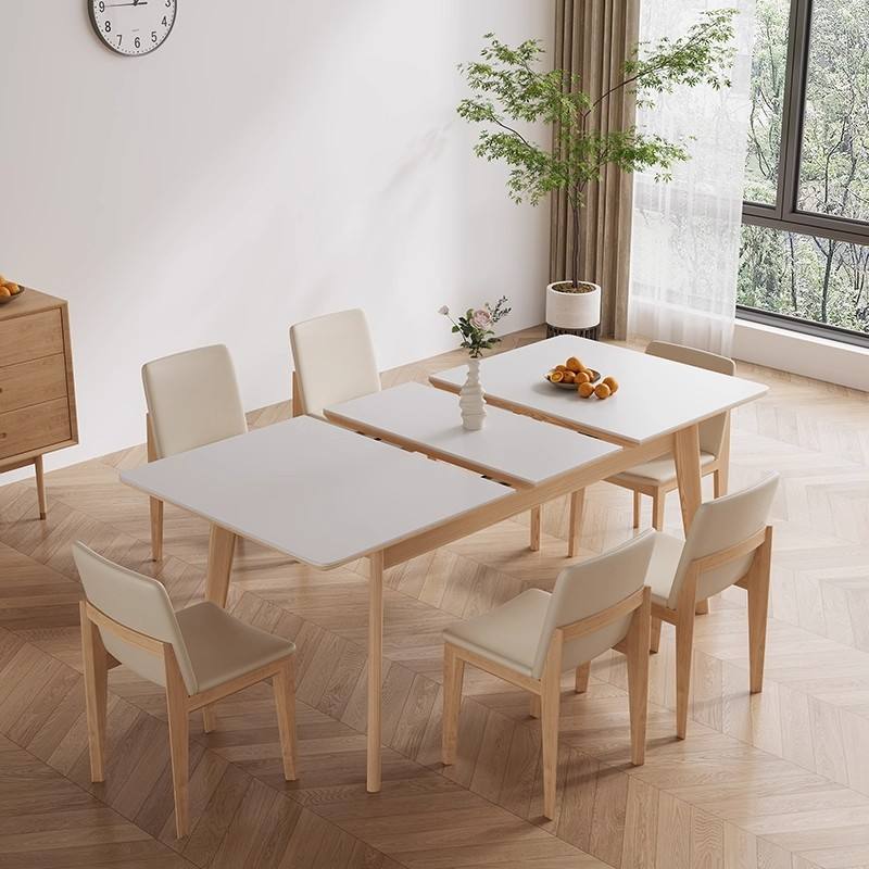 Ensemble de Table à Manger Extensible en Bois Massif au Design Nordique Moderne avec Plateau en Marbre pour Mobilier de Maison et de Restaurant