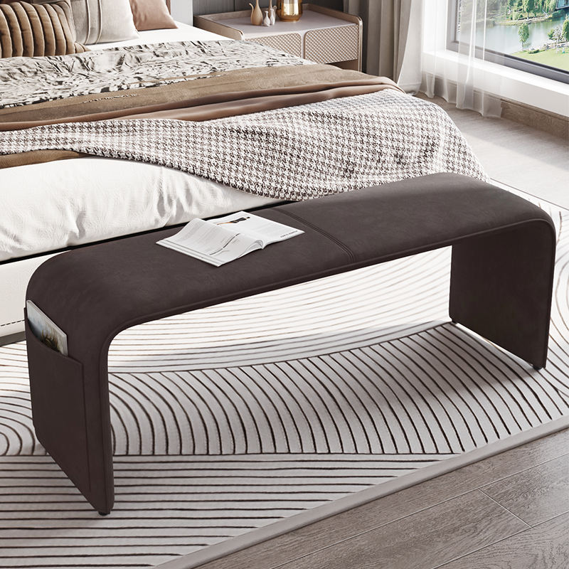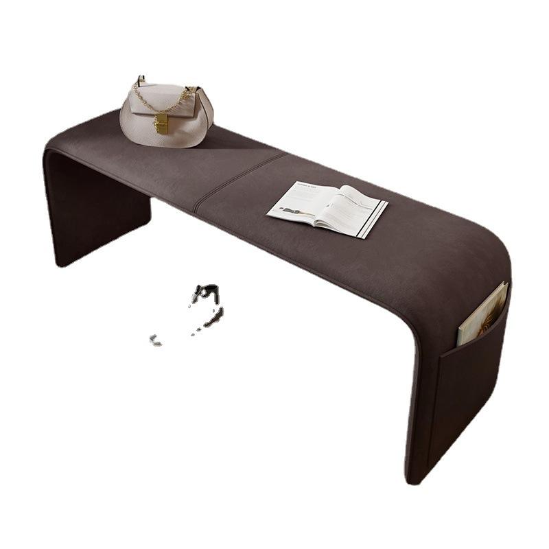 Banc à chaussures d'entrée design nordique en cuir pleine fleur, style moderne et minimaliste, pour salon ou bout de lit, usage adulte