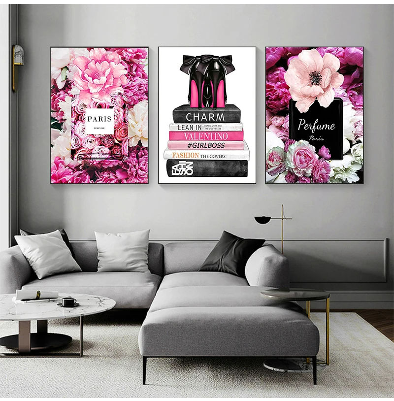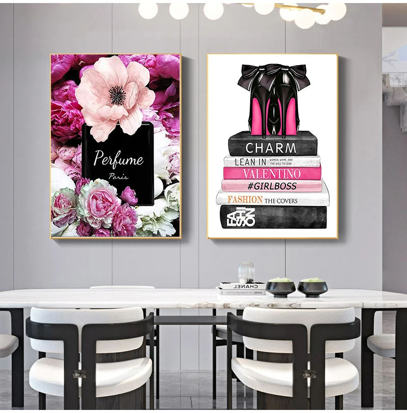 Nordic Fashion Design Paris Perfume Flower Book HD Print Posters Wall Art Mural Hanging Painting