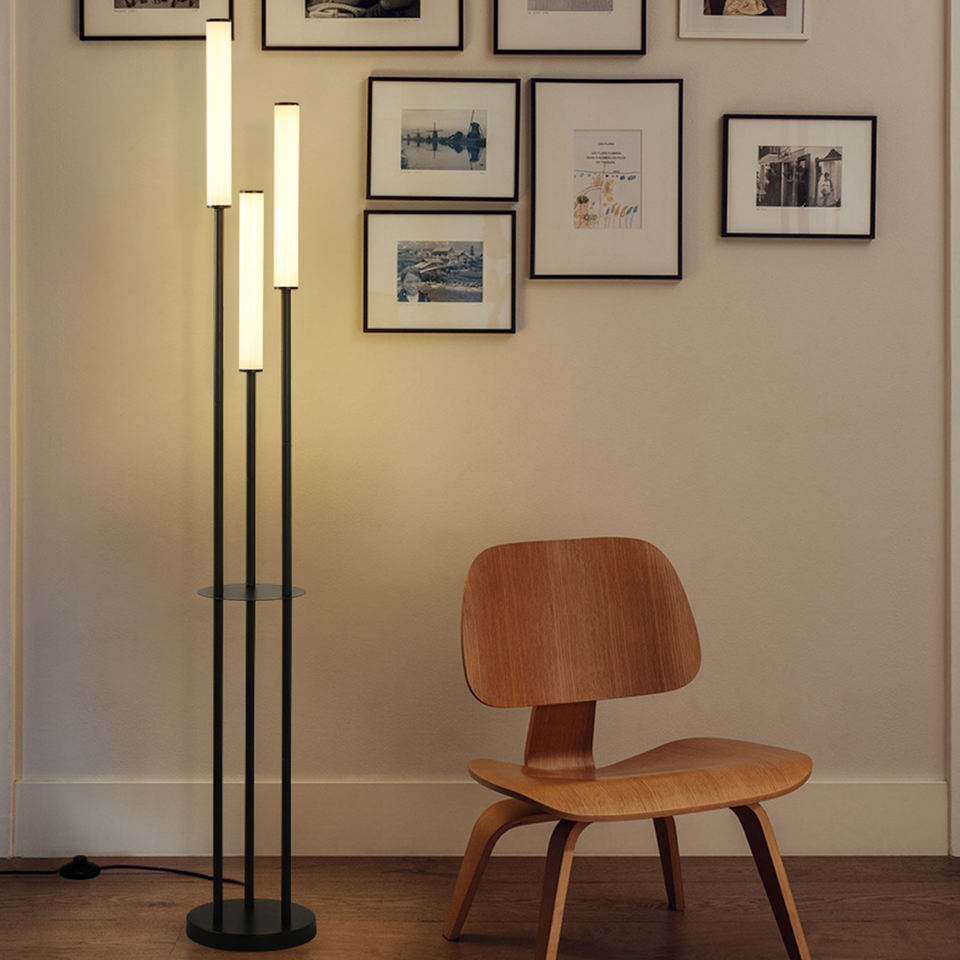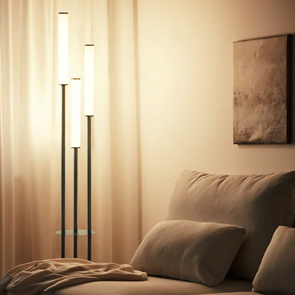 Lampe sur pied nordique minimaliste à trois LED avec étagère, lampes sur pied en fer forgé pour la décoration du salon