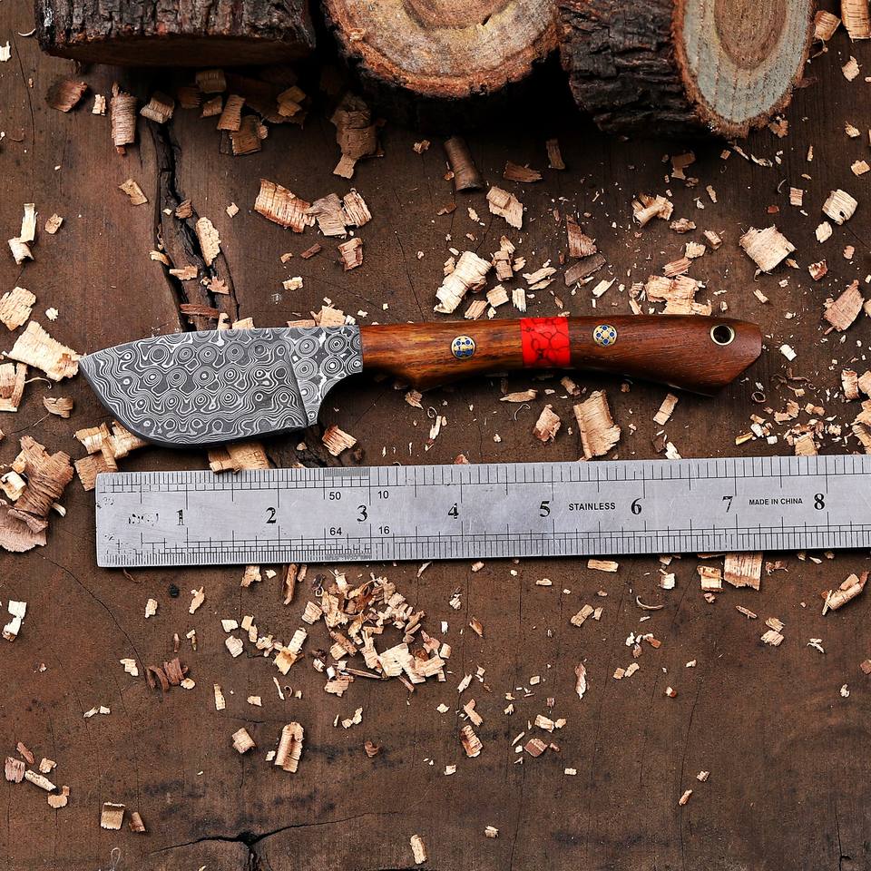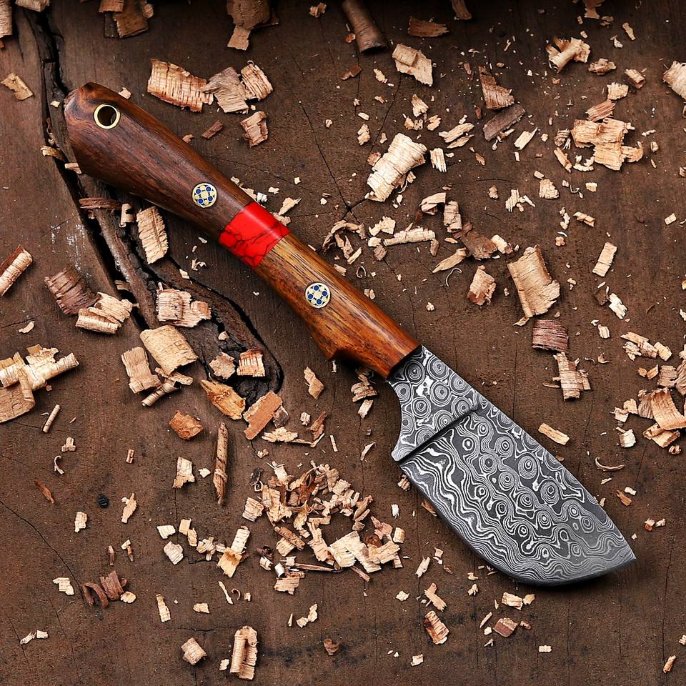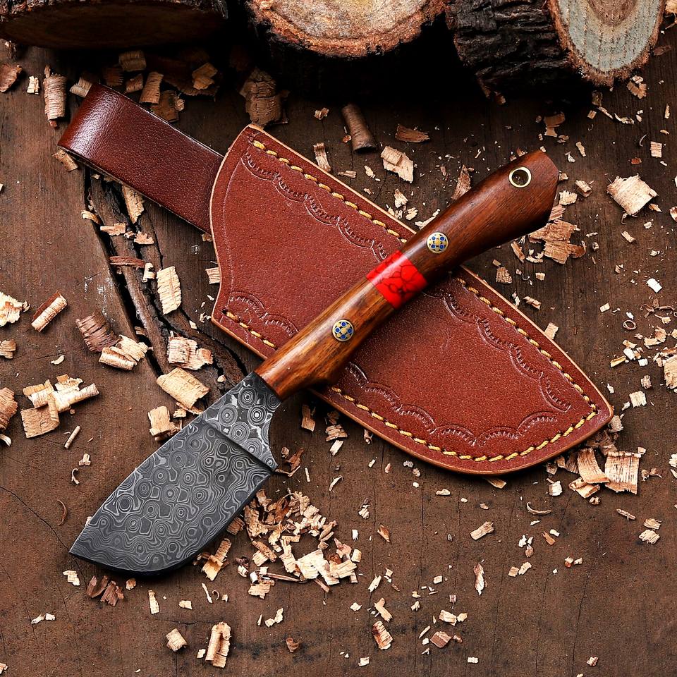 Couteau à lame fixe en acier Damas fait main Nordic Forge, fourreau en cuir, EDC, pleine lame, pour la chasse, le dépecage, le camping, bois de rose, turquoise