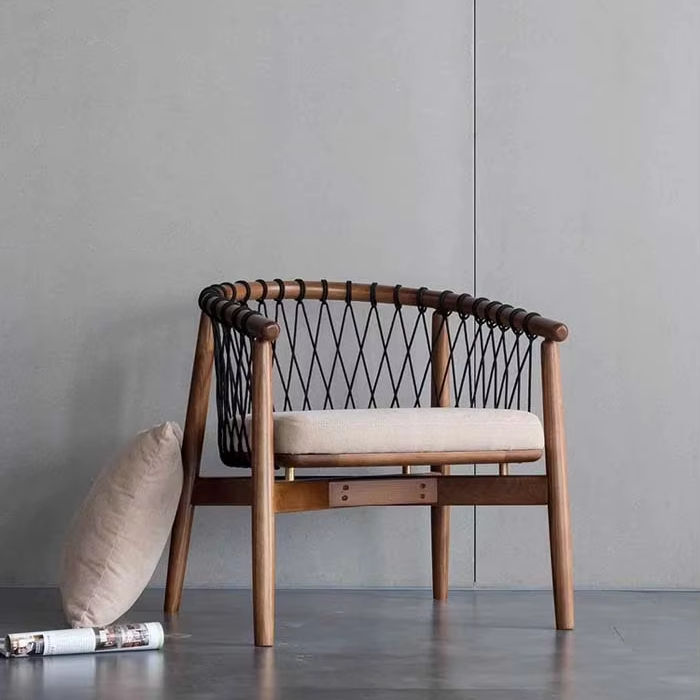 Chaise de canapé en pouf haut de gamme nordique en bois massif tissé avec corde pour des loisirs simples pour le salon extérieur ou appartement