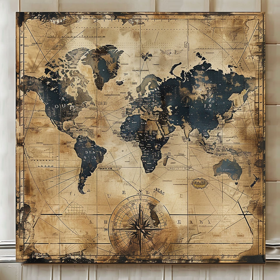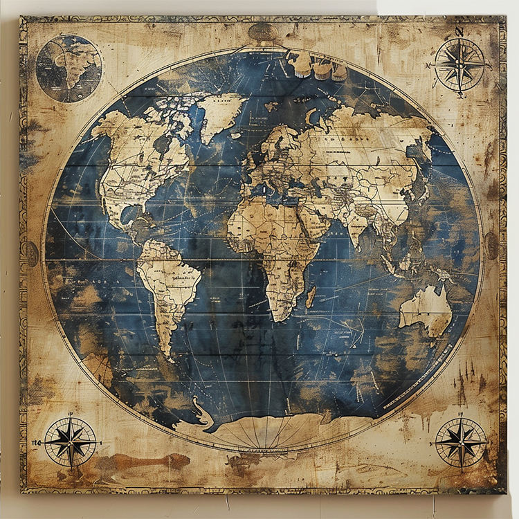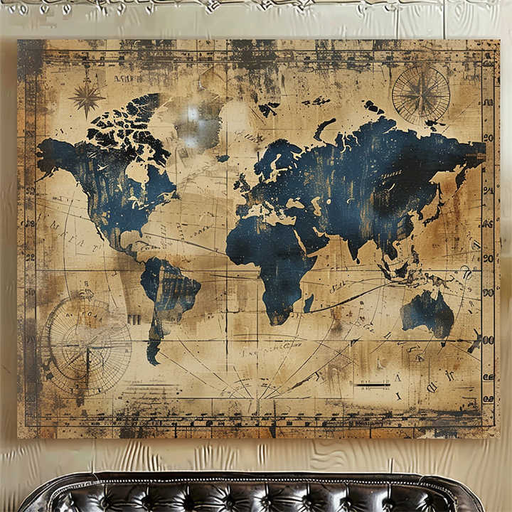 Nordique décor à la maison bleu Beige toile impression affiche Vintage grand mur Art carte du monde peinture