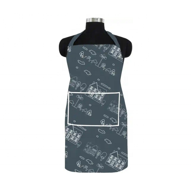 Nordic-Inspired 100% Cotton Embroidered Floral Grey Aprons With Back Tie Comfortable Fit And Logo Branding For Cafe Kitchen Use