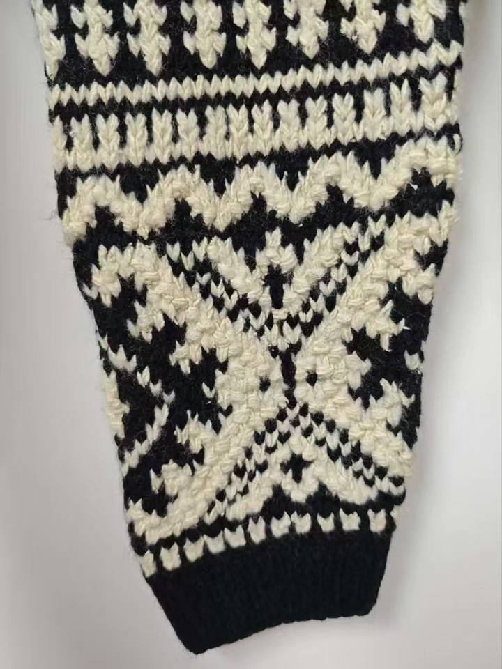 Pull tricoté d'épaule noire d'inspiration nordique avec motifs géométriques traditionnels de Fair Isle Logo avant de style décontracté
