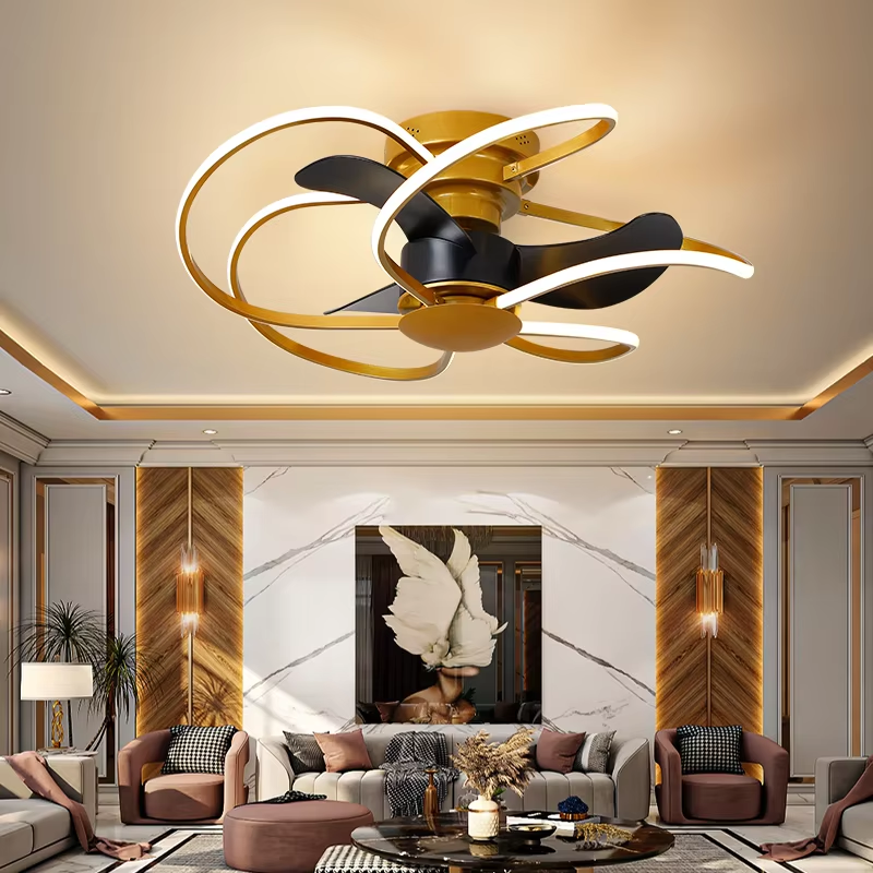 Ventilateur de plafond électrique LED 6 vitesses de luxe nordique, lampe en plastique, télécommande, application intelligente, extérieur, domestique