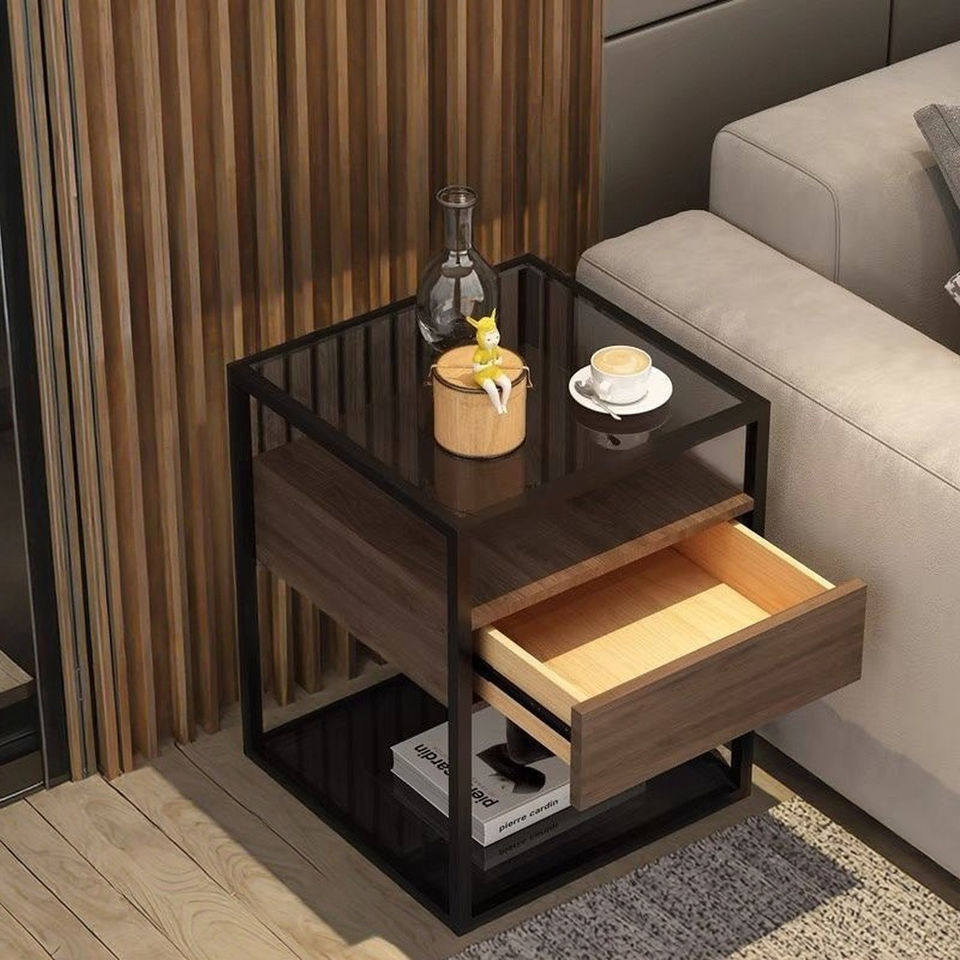 SélectionnerCouleur: Fer forgé noir + tiroir grain de bois noir en verre trempé