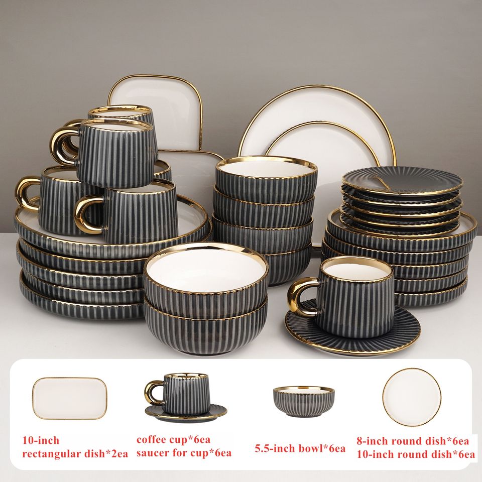 Service de vaisselle en porcelaine de luxe nordique, haute qualité, gris, vert, noir, bols, cadeau d'affaires, service pour 4 à 8 personnes