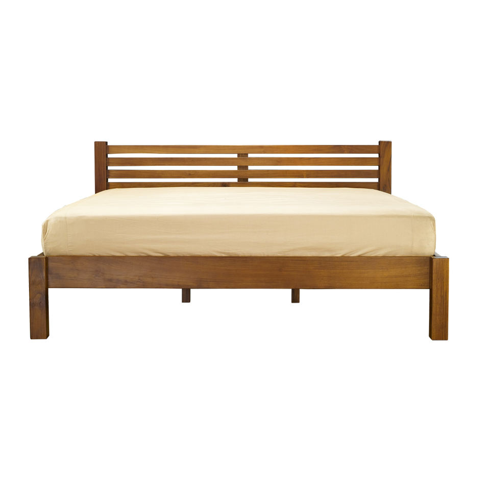Lit King Size Minimaliste Nordique avec Tête de Lit Rayée et Ensemble de Planches en Teck pour Chambre à Coucher