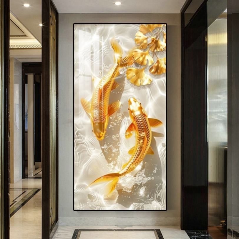 Peinture murale LED en porcelaine cristalline avec impression 3D HD personnalisée, motif poisson doré et paysage, style nordique moderne, pour décoration de salon et de maison