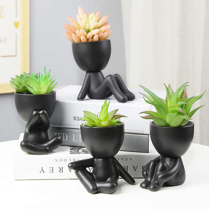 Pot de fleurs en céramique personnalisé de style nordique moderne, planteur créatif noir paresseux avec personnalité, ornement de bureau