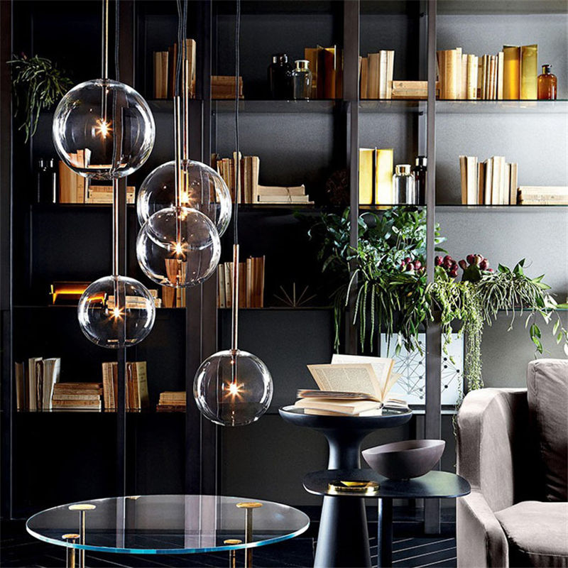 Lampe suspendue LED moderne nordique, luminaire avec abat-jour en verre transparent, lampes suspendues pour chambre à coucher, salle à manger, restaurant