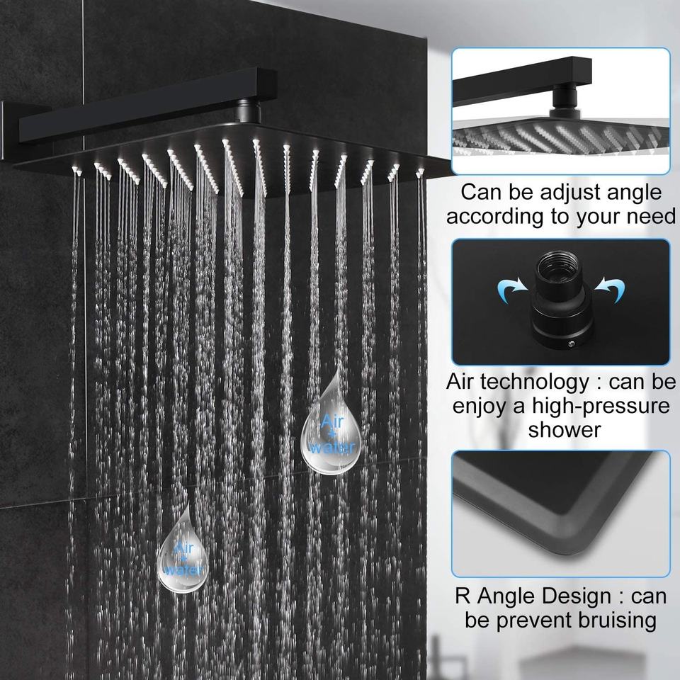Ensemble de Douche Mural Encastré de Luxe Nordique Moderne et Minimaliste, Colonne de Douche Mitigeur en Laiton Noir Mat de 10 Pouces pour Salle de Bain