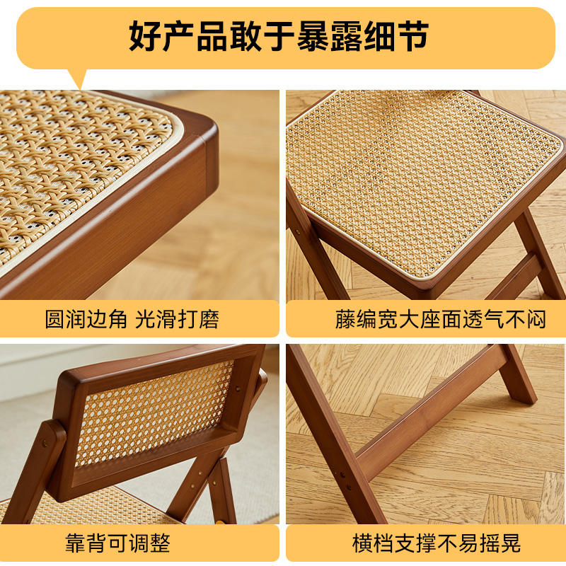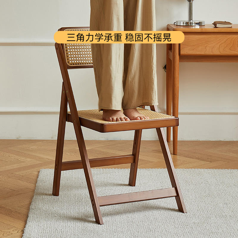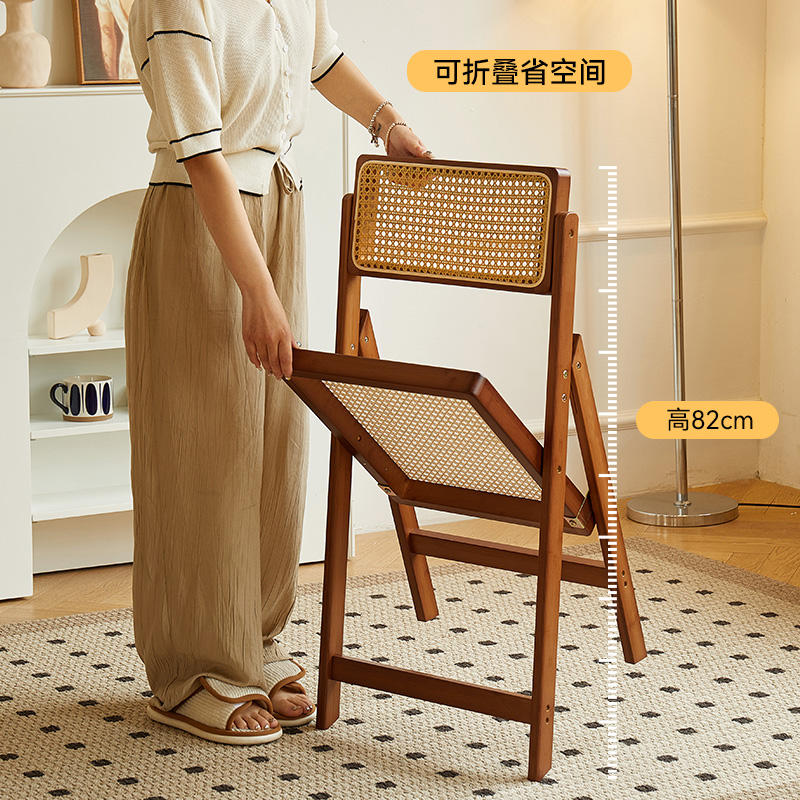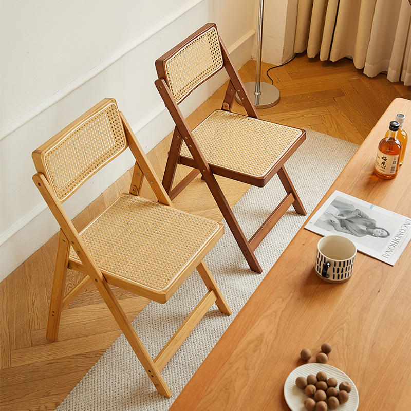 Chaise nordique moderne en rotin bambou massif dossier en bois naturel pliable tabouret de salle à manger domestique Wabi-Sabi pour salon
