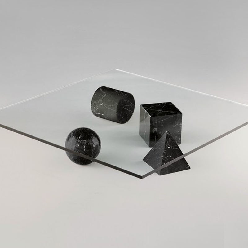 Table à thé nordique en marbre naturel travertin, salon de luxe, verre transparent, table à thé carrée, table basse