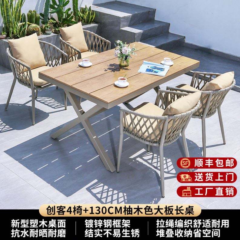 Nordic Outdoor Tables and Chairs Villa Courtyard Garden Rattan Aluminum Alloy Outdoor Leisure Simple Open-air Plastic