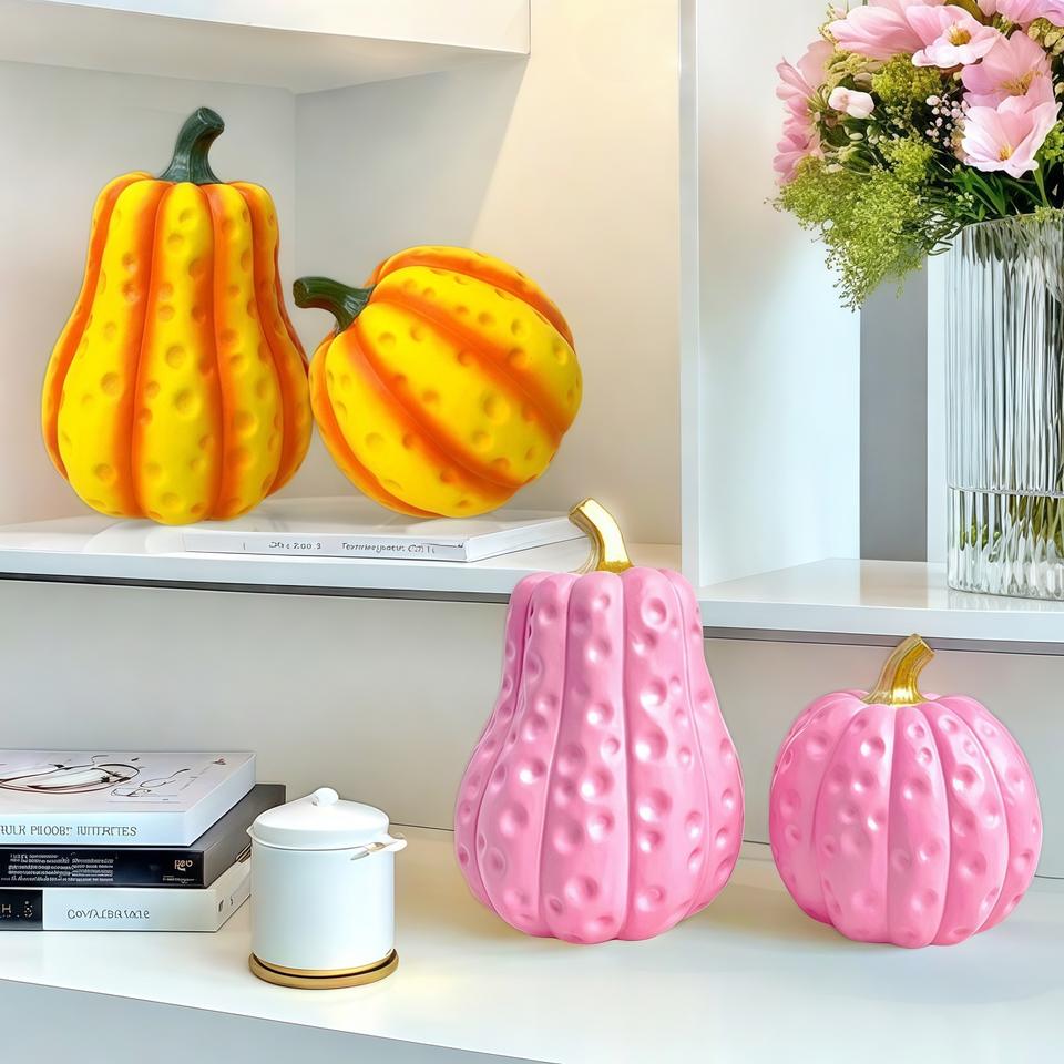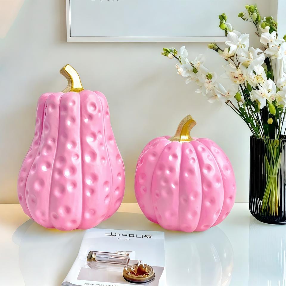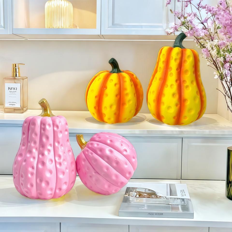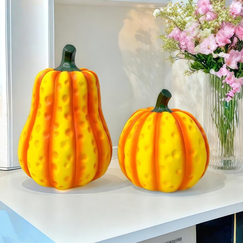 Ensemble créatif pastoral nordique de deux ornements citrouilles en résine époxy sculptée, art populaire, décoration d'intérieur pour salon et cave à vin