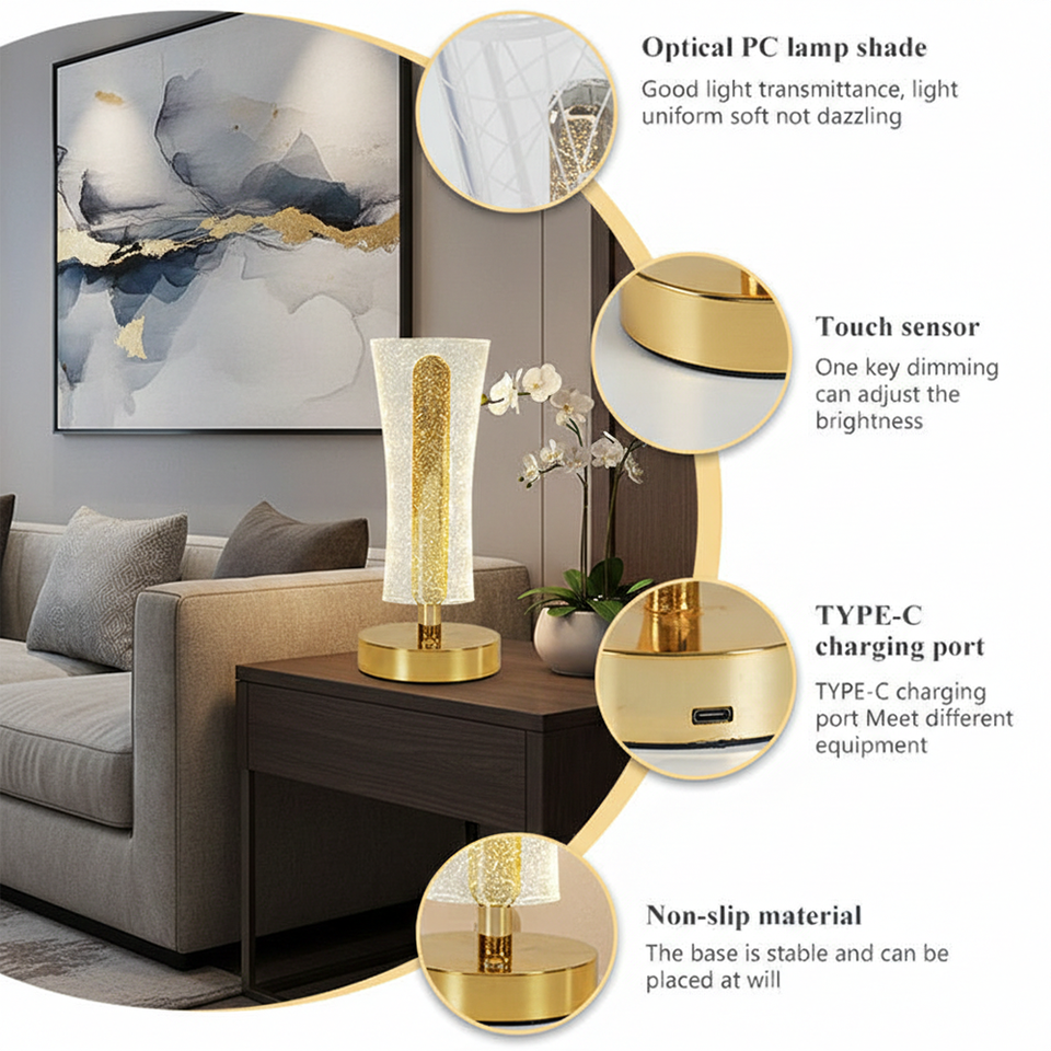 Lampe de table sans fil en acrylique doré, style nordique, rechargeable, créative, minimaliste, simple, pour restaurant, maison, intérieur