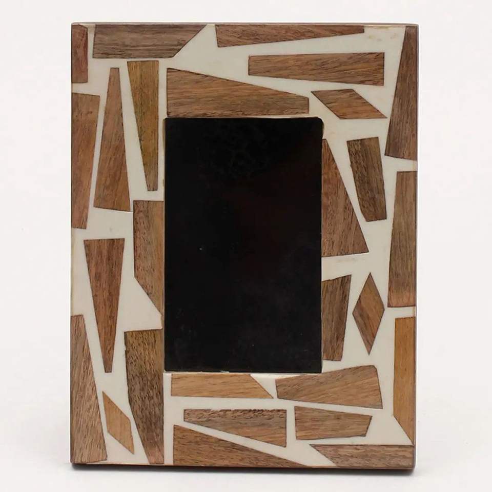 Cadre photo en résine à texture ondulée nordique, fait main, à suspendre au mur, avec impression typographique en 3 couleurs