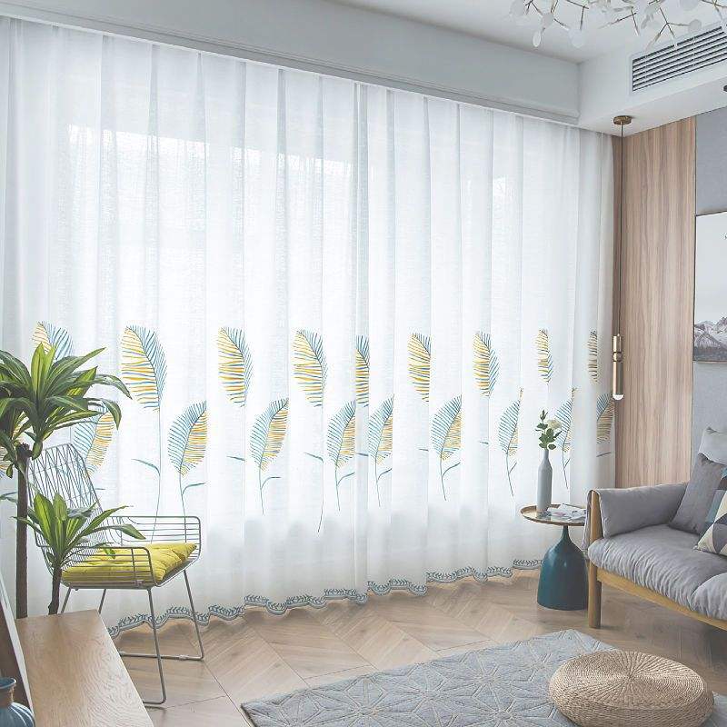 Rideaux transparents blancs semi-transparents nordiques à motifs de feuilles brodés en dentelle pour chambre à coucher et salon