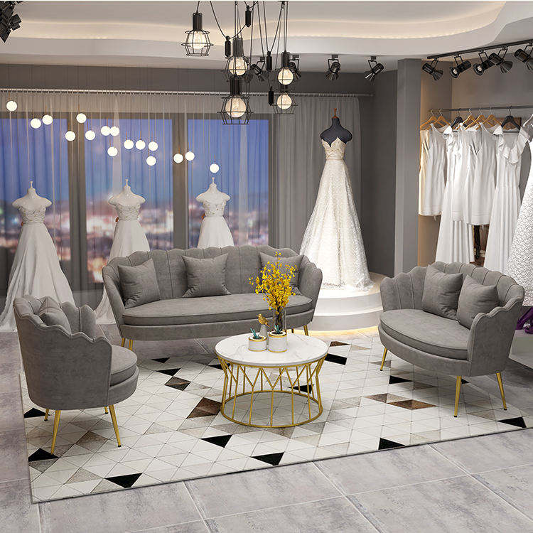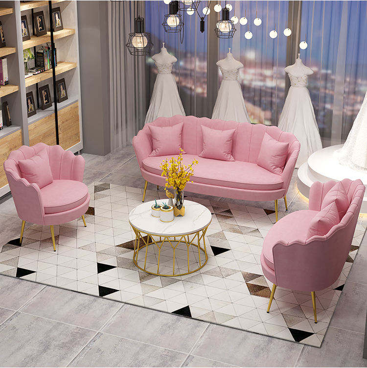 Canapé nordique simple moderne en velours et métal pour salon à la maison et réception de bureau pour hôtels et appartements