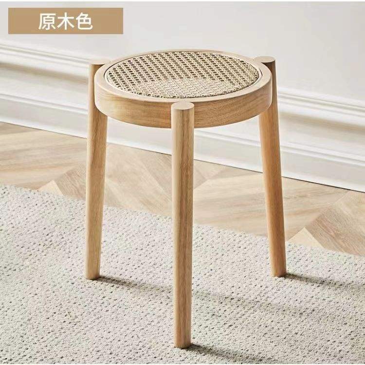 Nordic Solid Wood Rattan Dining Round square Stool Chair Casual Household Weaving Stacking Small Changing Shoes Stool Chair
