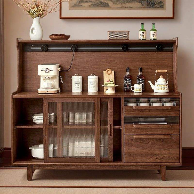 Buffet rétro en bois massif couleur noyer, meuble de rangement pour café et thé, meuble de salon