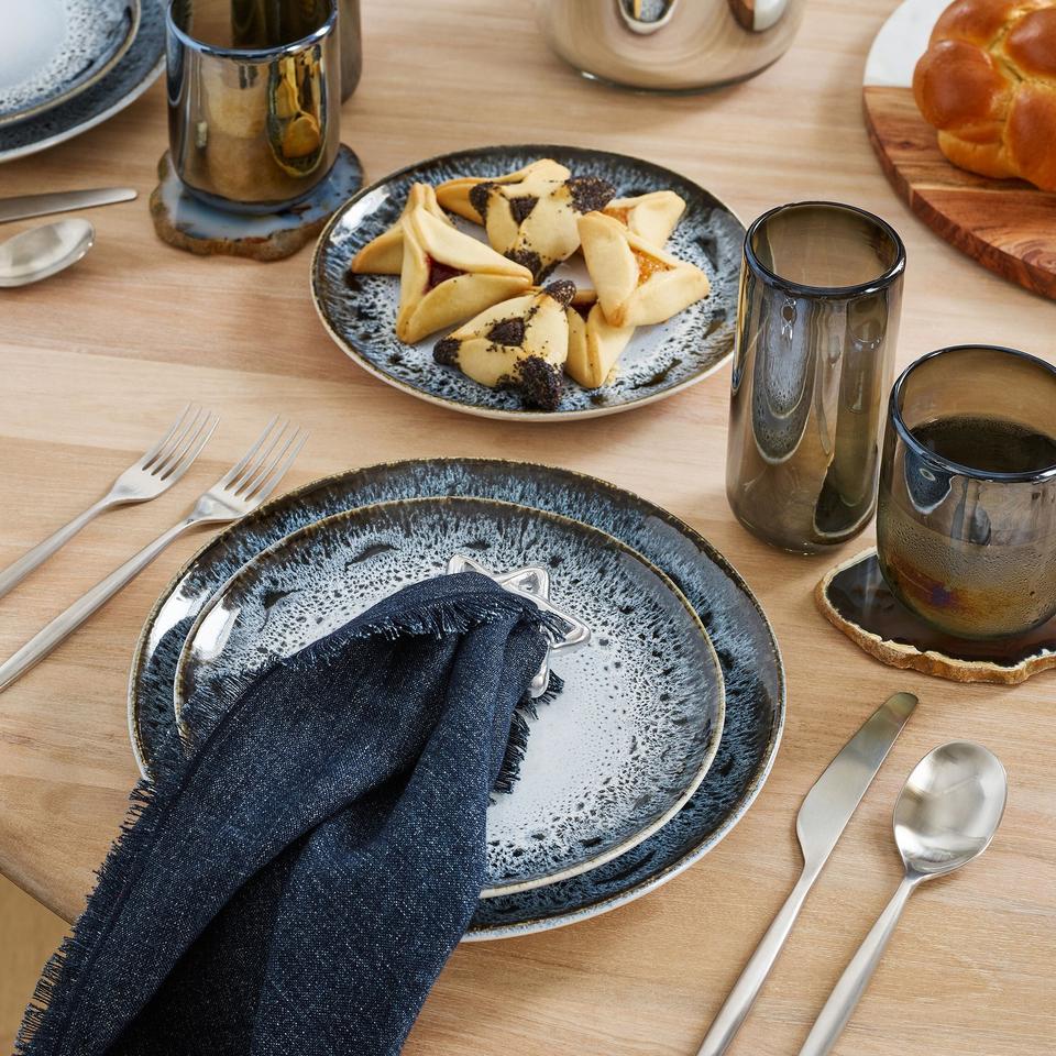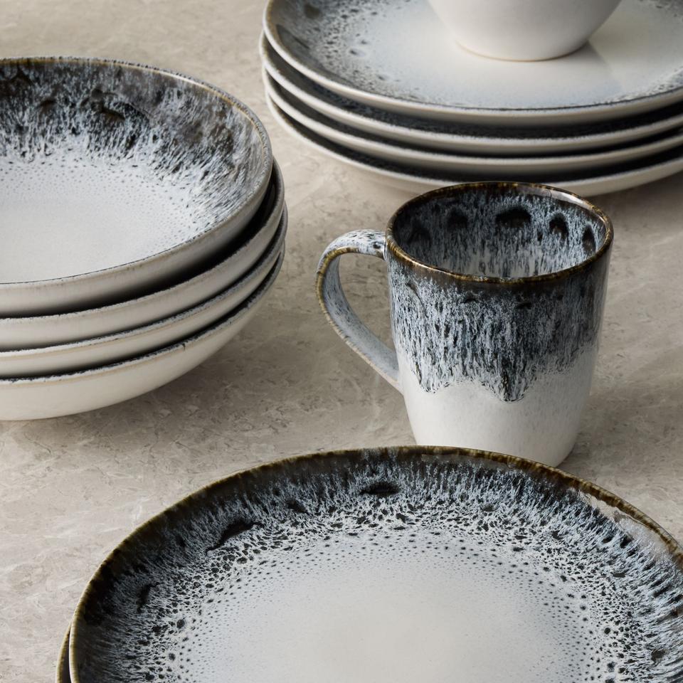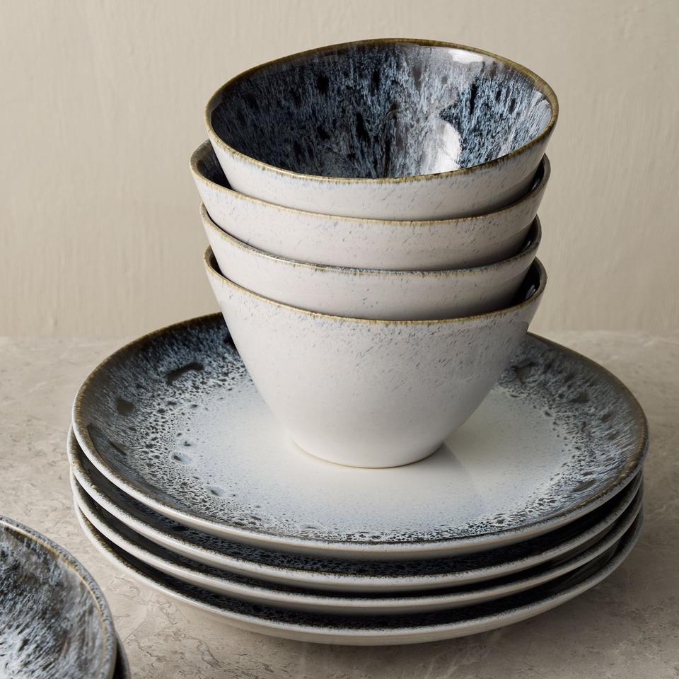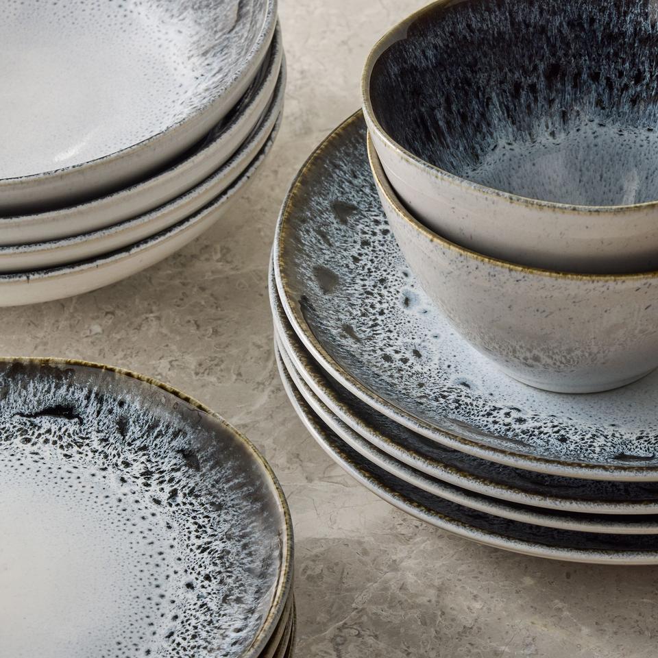 Ensemble d'assiettes en céramique effet pierre nordique, finition émail réactif, empilables, design durable pour les tables rustiques modernes