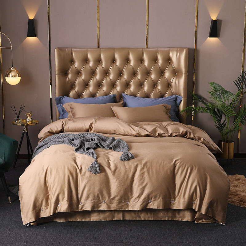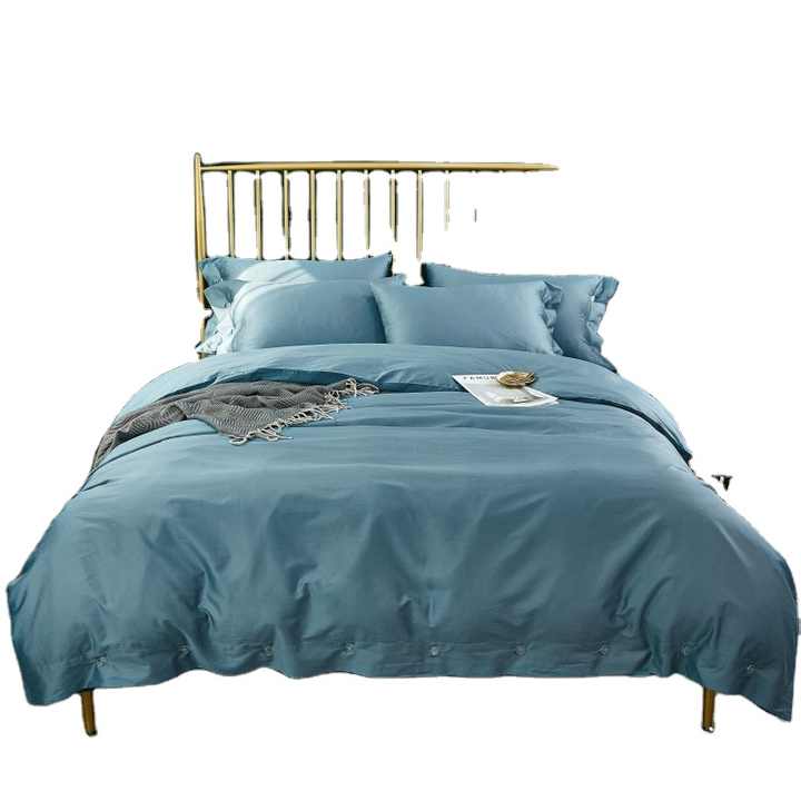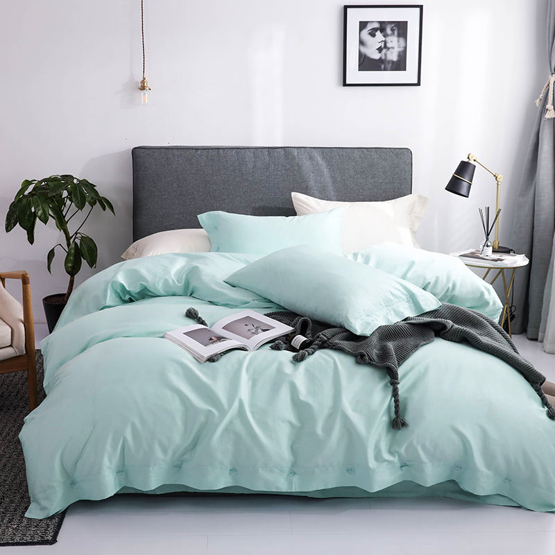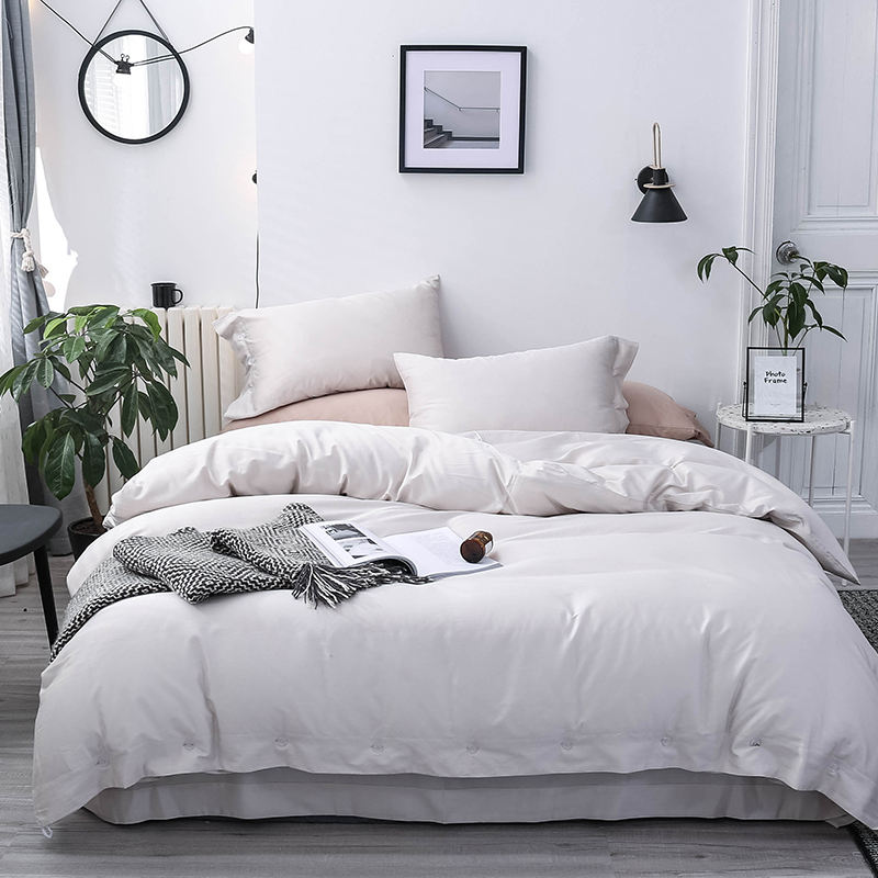 Parure de lit 4 pièces style nordique, imperméable, en coton biologique à fibres longues 300TC 60S, 100% coton, motif uni, 400TC
