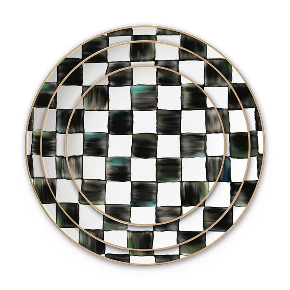 Assiette plate en porcelaine de style nordique, noir et blanc à carreaux, logo personnalisé