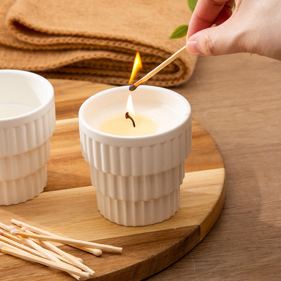 Porte-bougie cylindrique en céramique de style nordique, vide, pour usage domestique, cadeau, DB2861