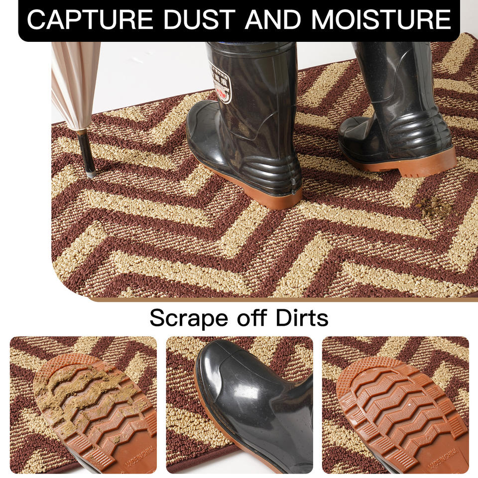 Paillasson rectangulaire antidérapant style nordique à chevrons, tapis d'entrée pour usage domestique en fibre de polyester à poils bicolores