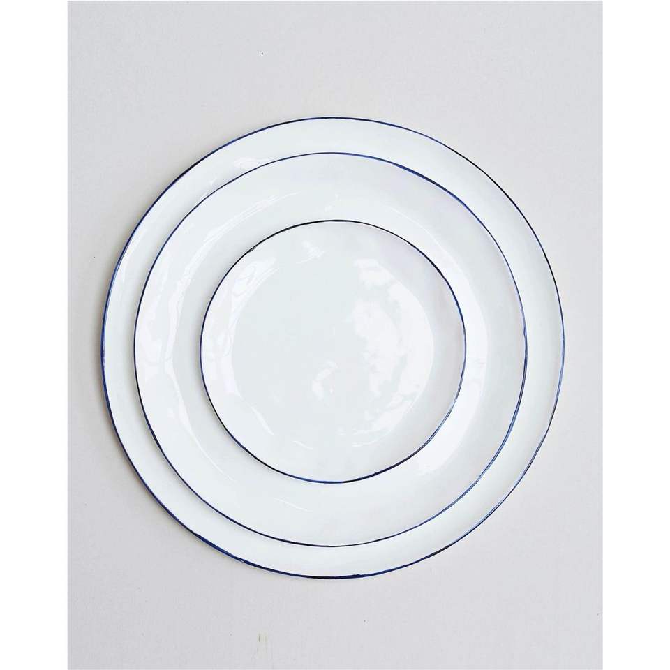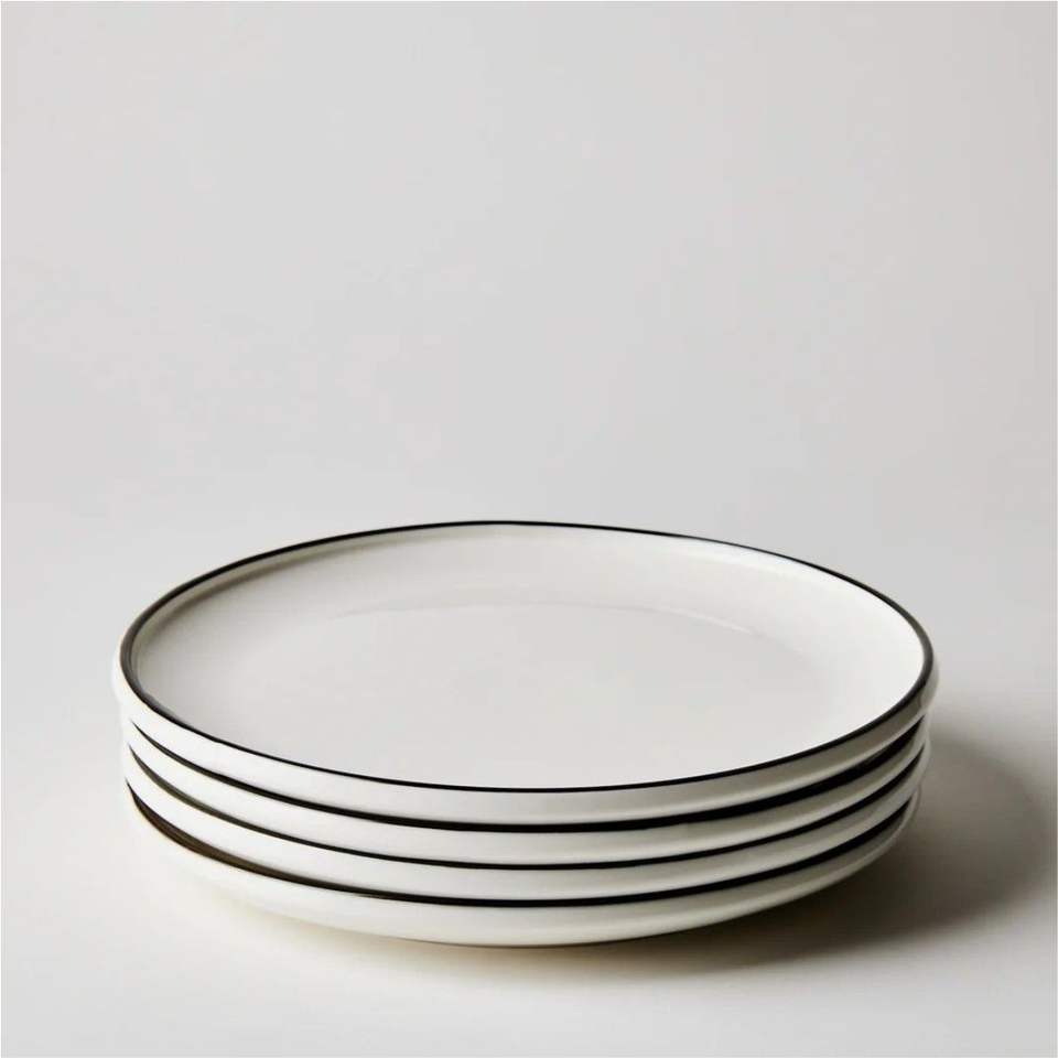 Assiette de Présentation en Émail Crème Style Nordique, Assiette de Table en Métal Bordée, Fournitures Professionnelles de Restauration, Sous-Assiette de Restaurant
