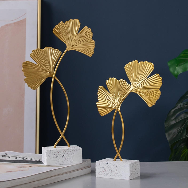 Artisanat en métal fait main de style nordique, ornements de ginkgo biloba, décoration d'intérieur, salon, véranda, ornements de ginkgo biloba