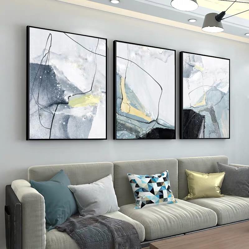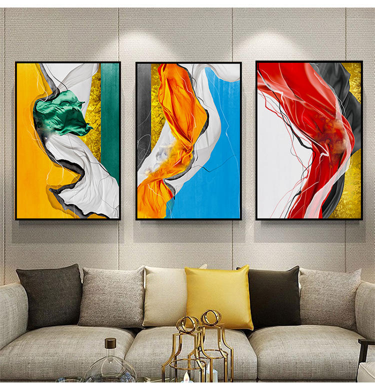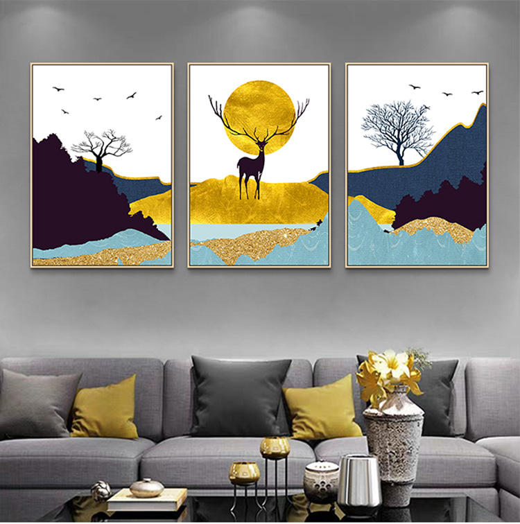 Peinture murale triple, décoration moderne de style nordique, décor d'ambiance de salon, peinture murale suspendue