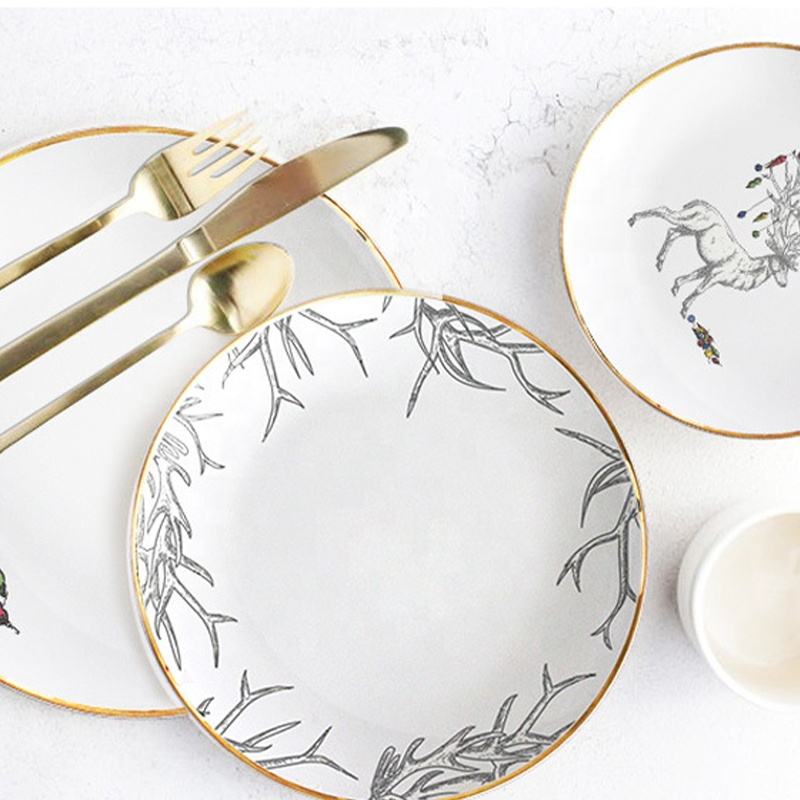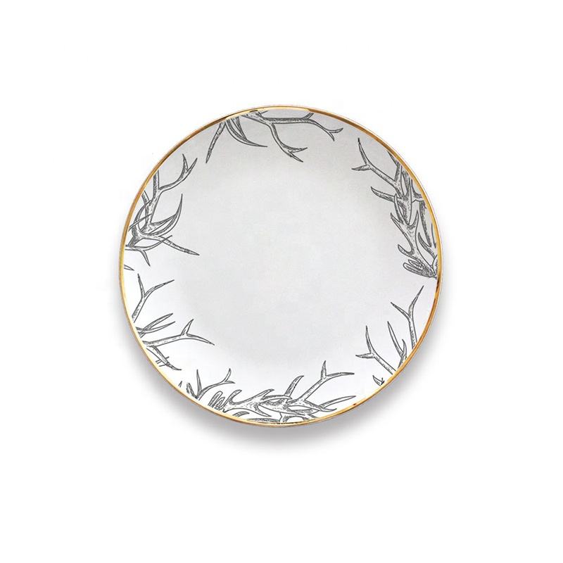Ensemble d'assiettes de dîner blanches en porcelaine fine, design personnalisé élégant de style nordique, respectueux de l'environnement
