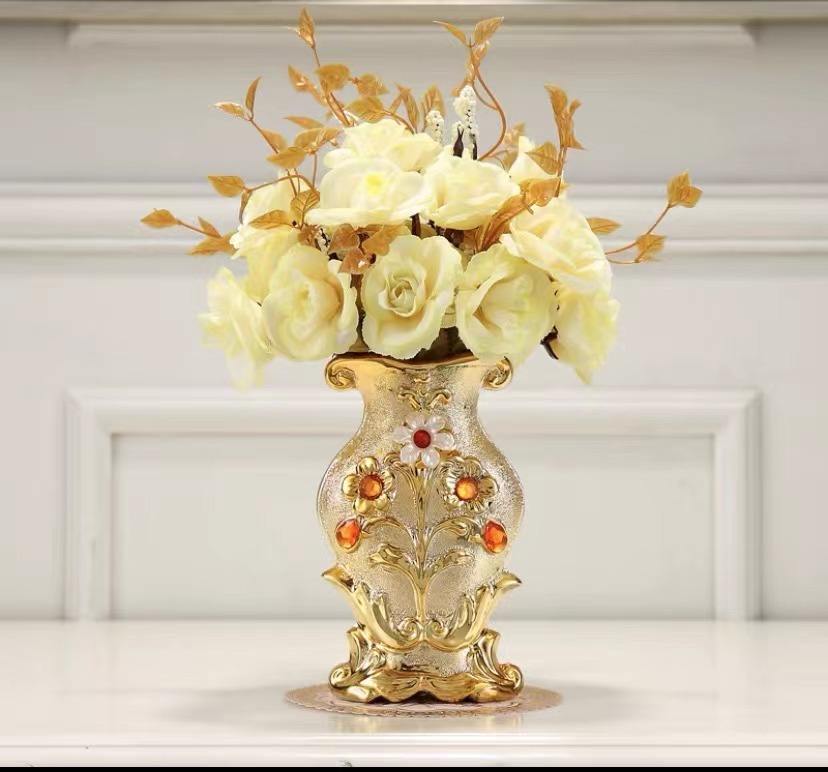 Vase en céramique doré de style nordique, décoration de salon, arrangement floral, vase de bureau, rose artificielle